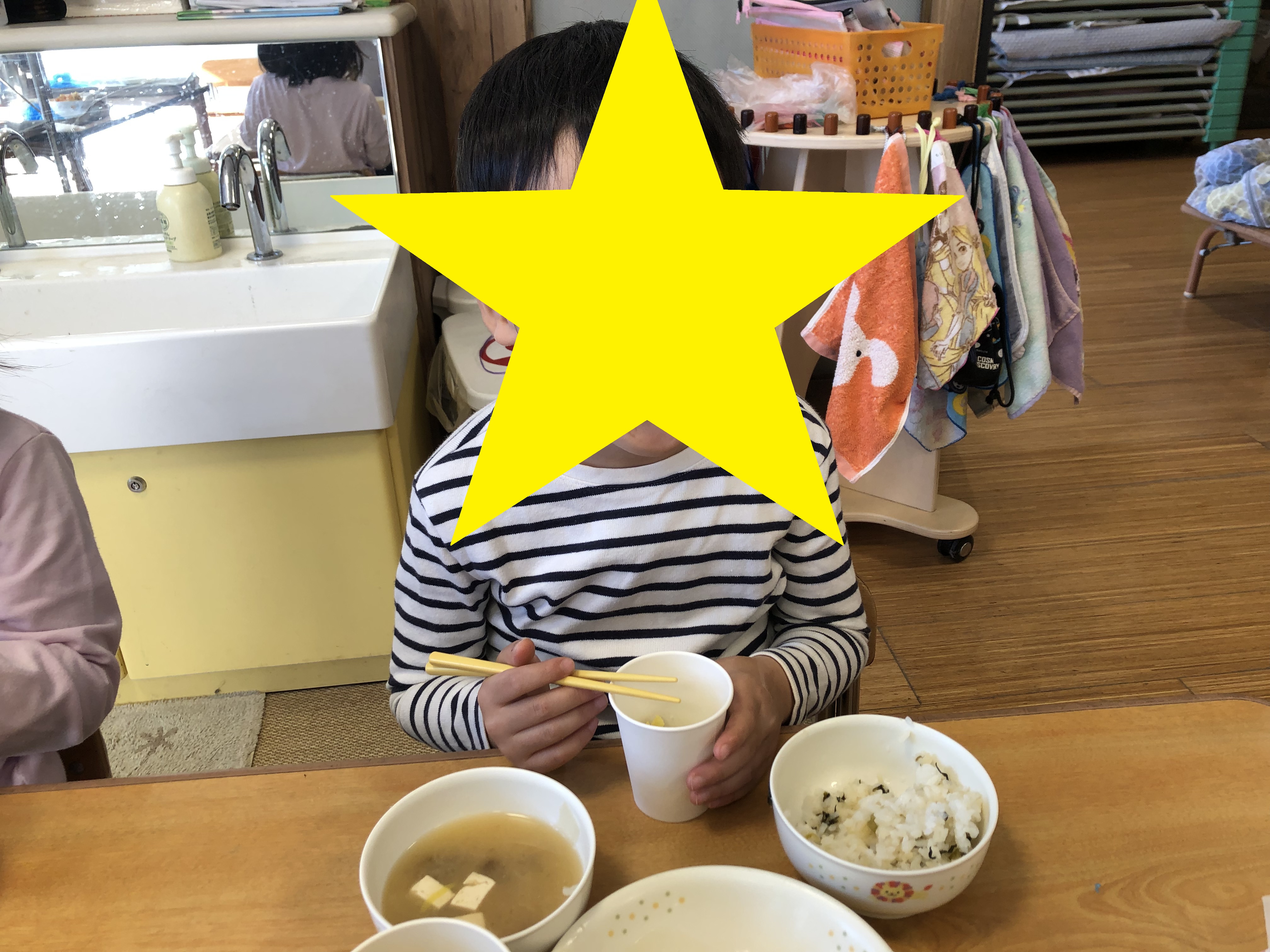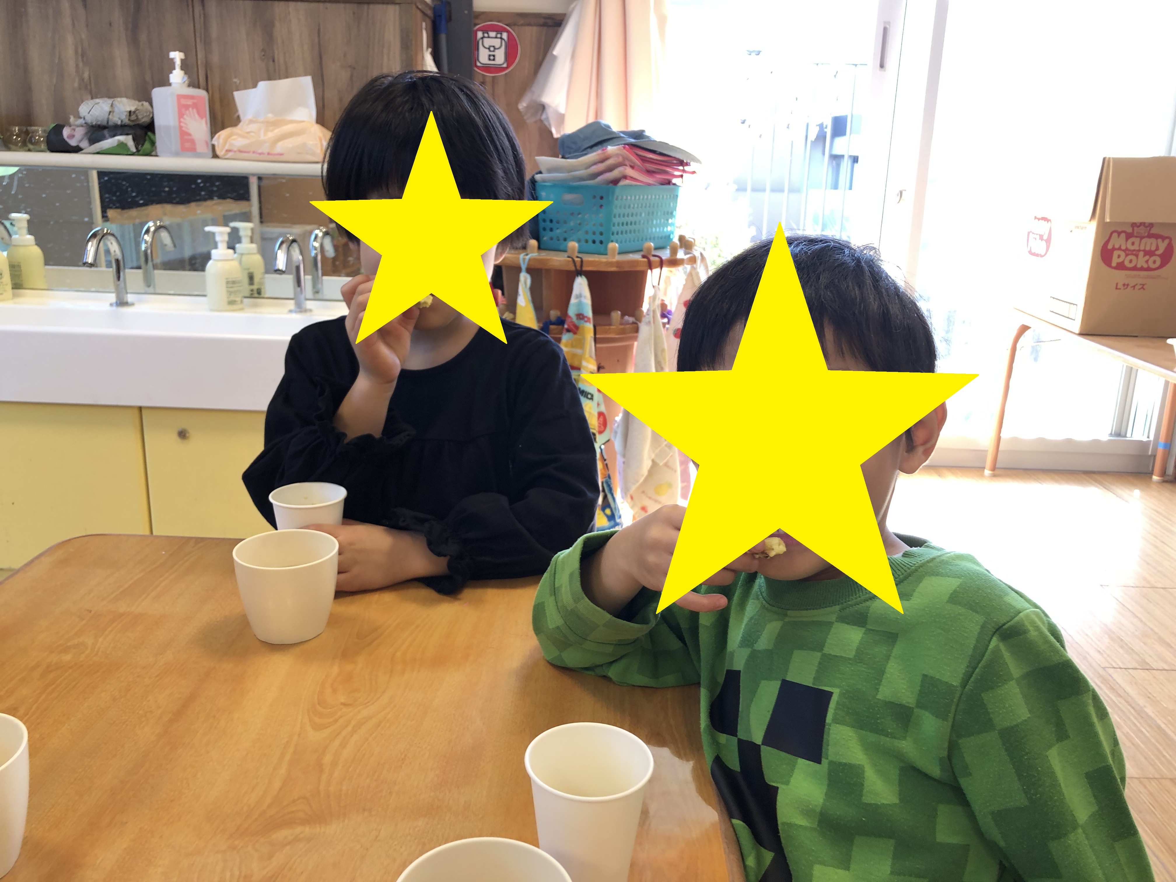 先日の様子を見て楽しみにしていたお友だちもいて、クラスの保育室からのぞいてワクワクしている姿がありました。