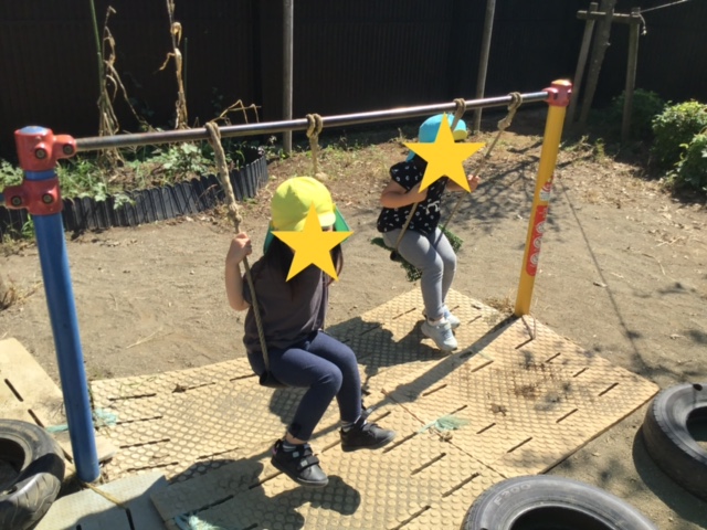 その後は園庭で遊びました。ブランコや砂場などそれぞれ好きな場所で楽しみました。