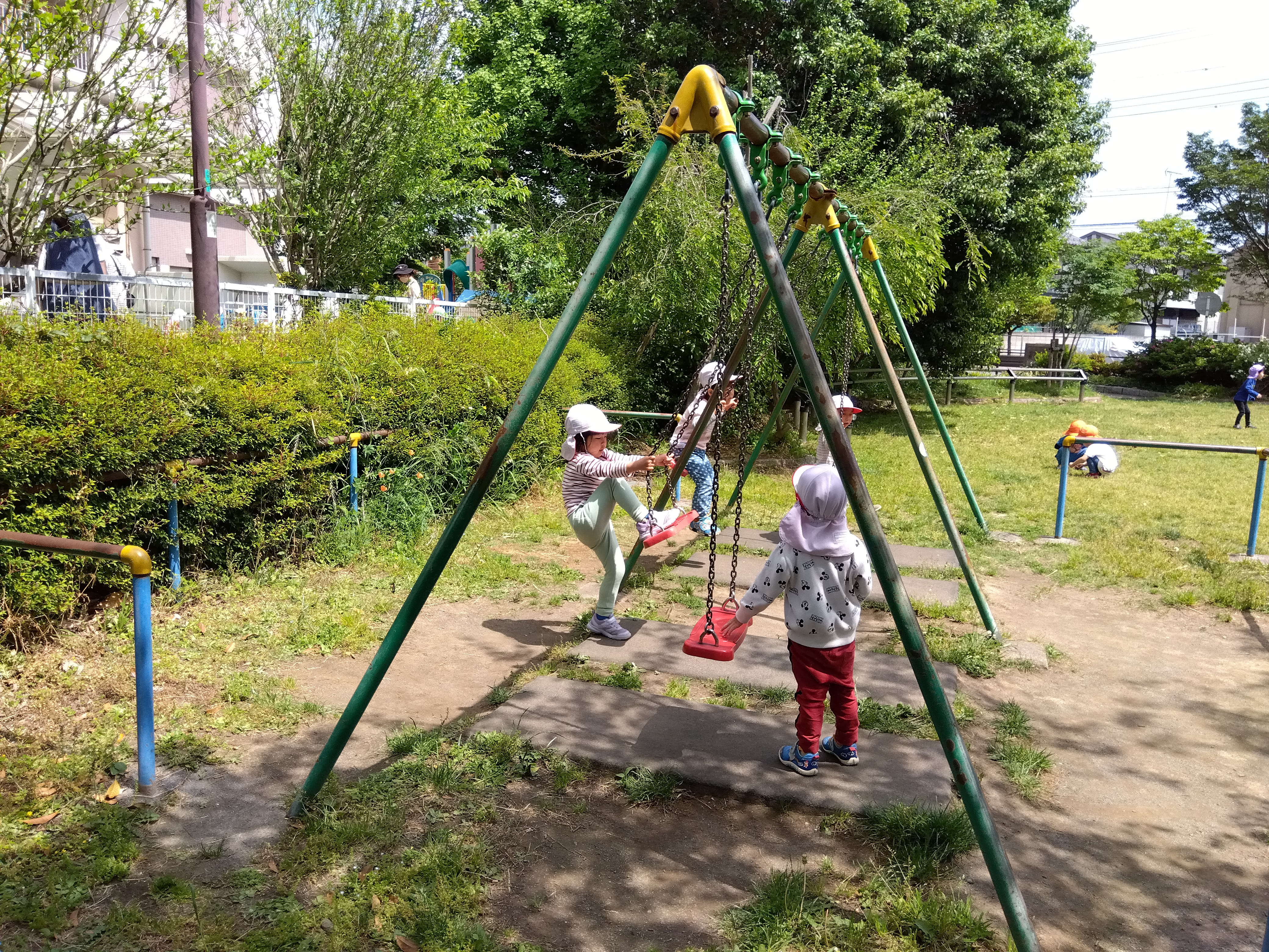 園庭での遊びにも少しずつ慣れてきた様子のひなぎく組さん。