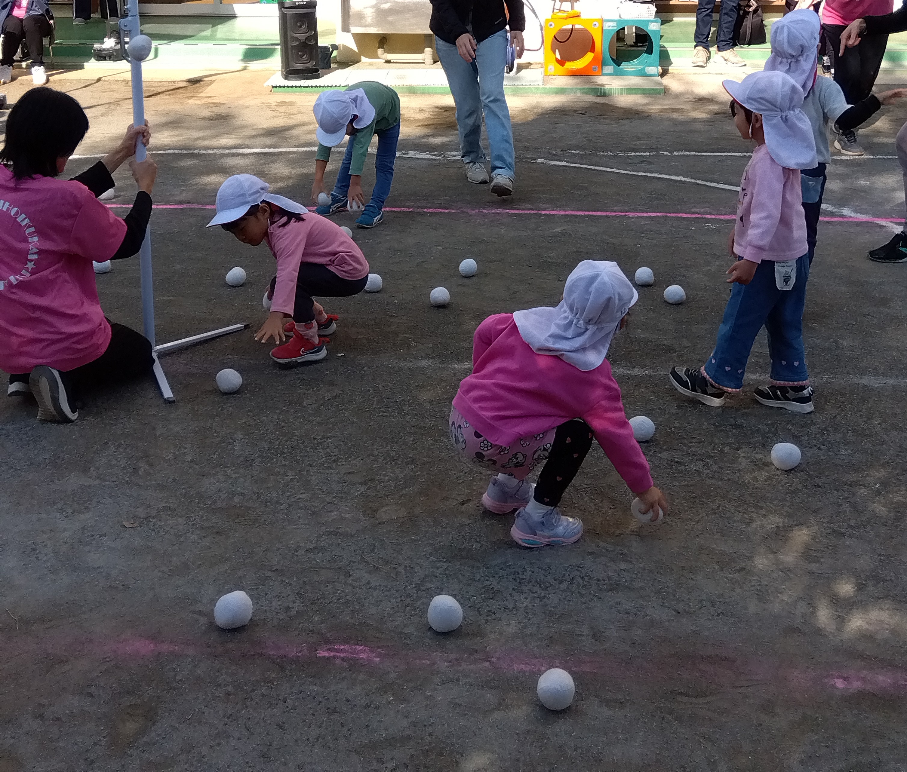 体操・玉入れ・宝物をゲットする障害物競走を親子で楽しみました。