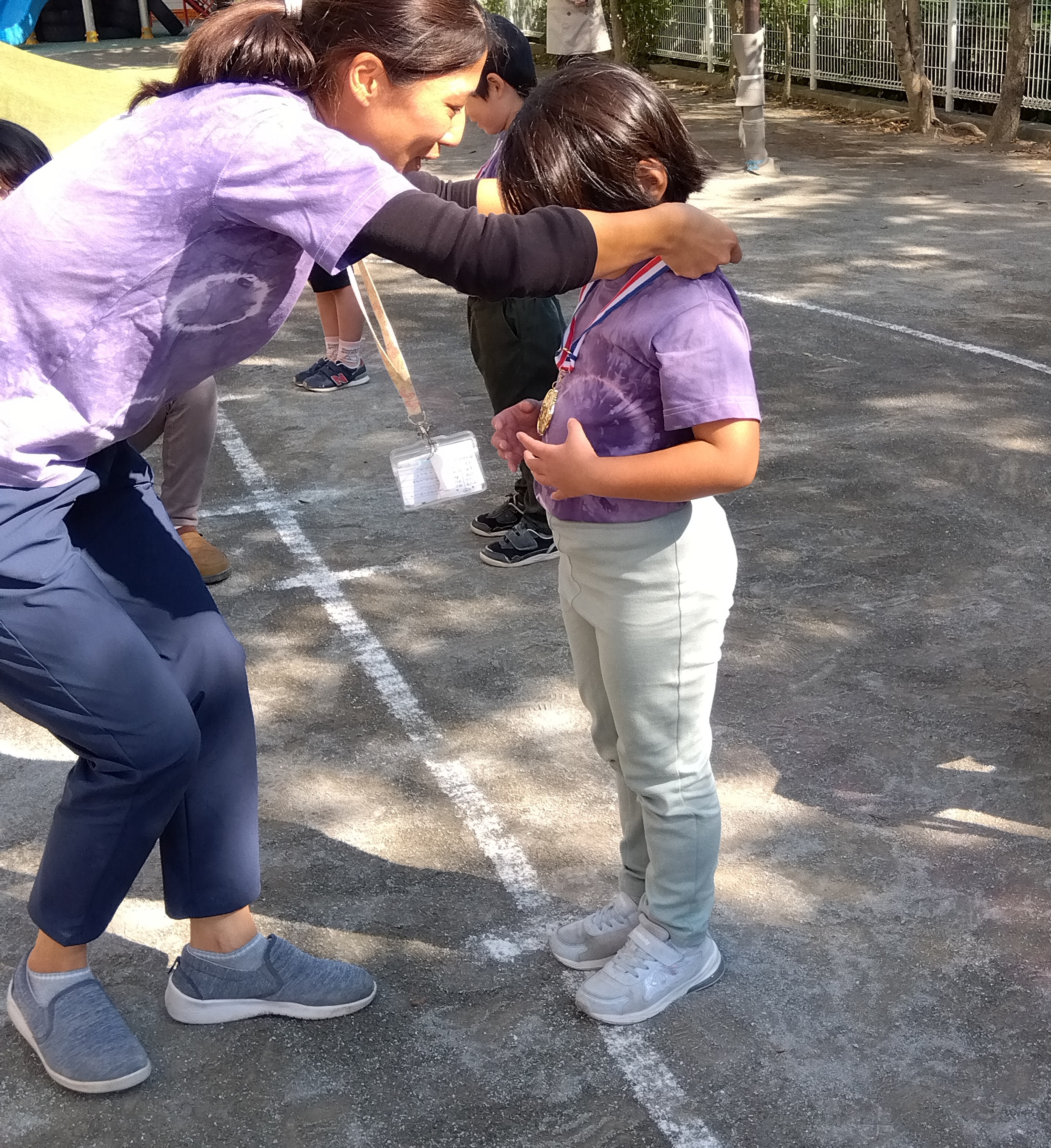 前クラス最後は金メダルをプレゼントしてもらい、最高の笑顔が見られました。