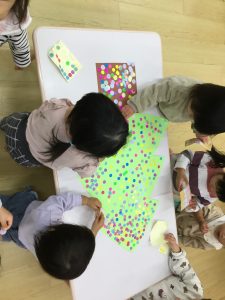 様々な色のシールの中から「ピンクがいい」「黄色が好き」と自分で好きな色を選ぶ様子にも成長を感じました。