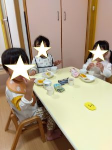 机も少しだけ飾りつけをして、みんなで食べると美味しいね!