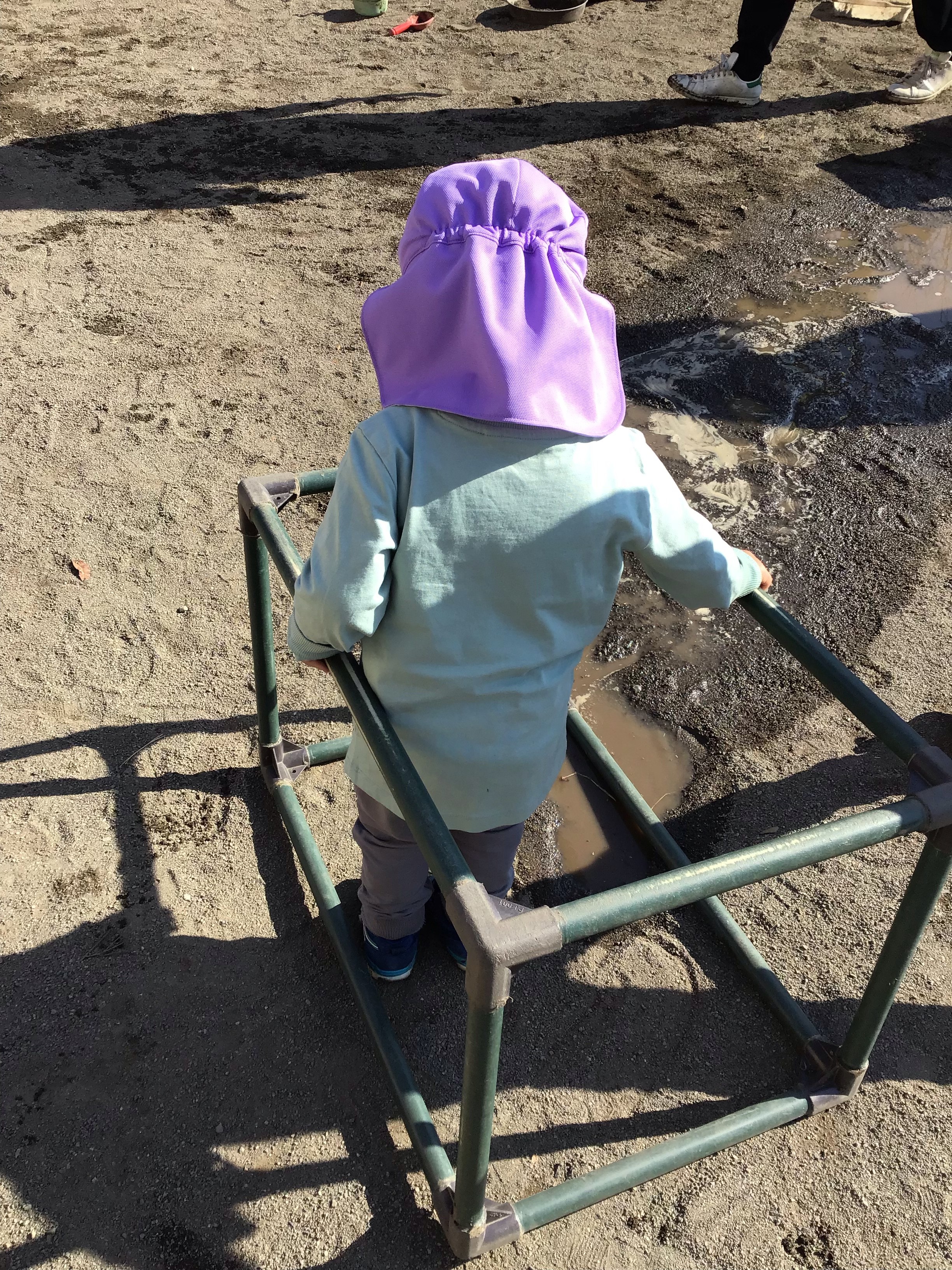ジャングルジムでは、迷路のように遊んだり、高い場所まで登っていました。