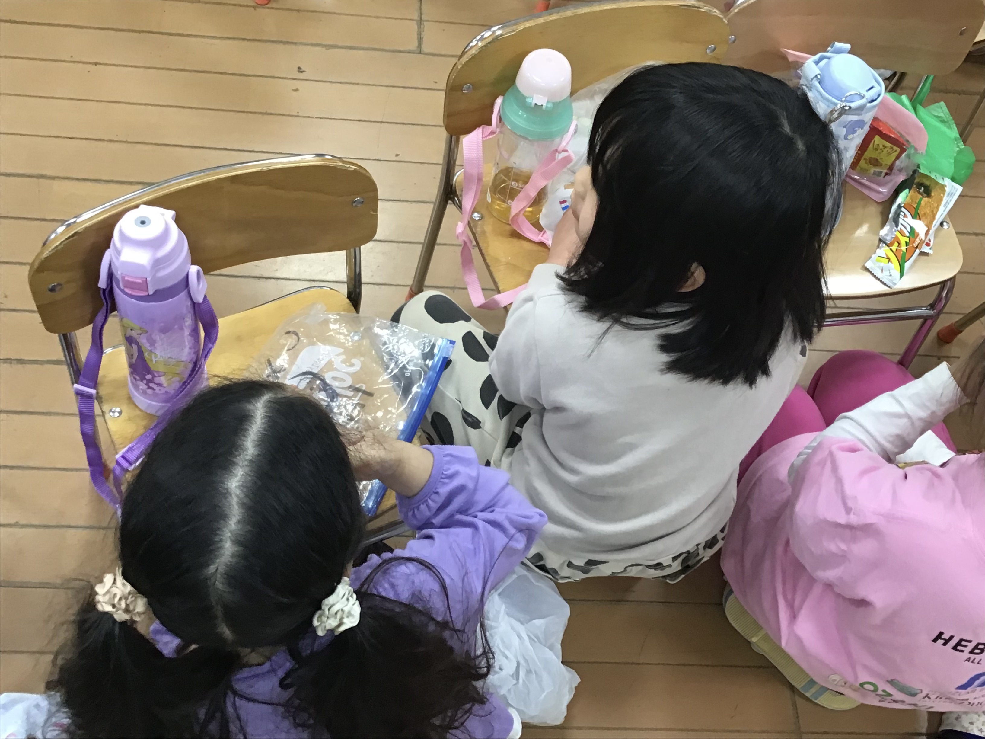 「おにぎりだ」や「タコさんウィンナーだった」や「お母さんのおにぎりが一番美味しいんだよ」と可愛い声が聞こえました。