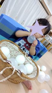 ほし組さんではお月様投げ・うさぎジャンプを楽しんでいましたよ。