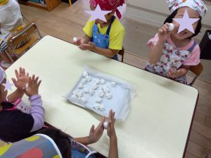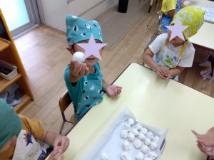 光が丘保育園ではつき組さんがお月見団子を作ってくれました。