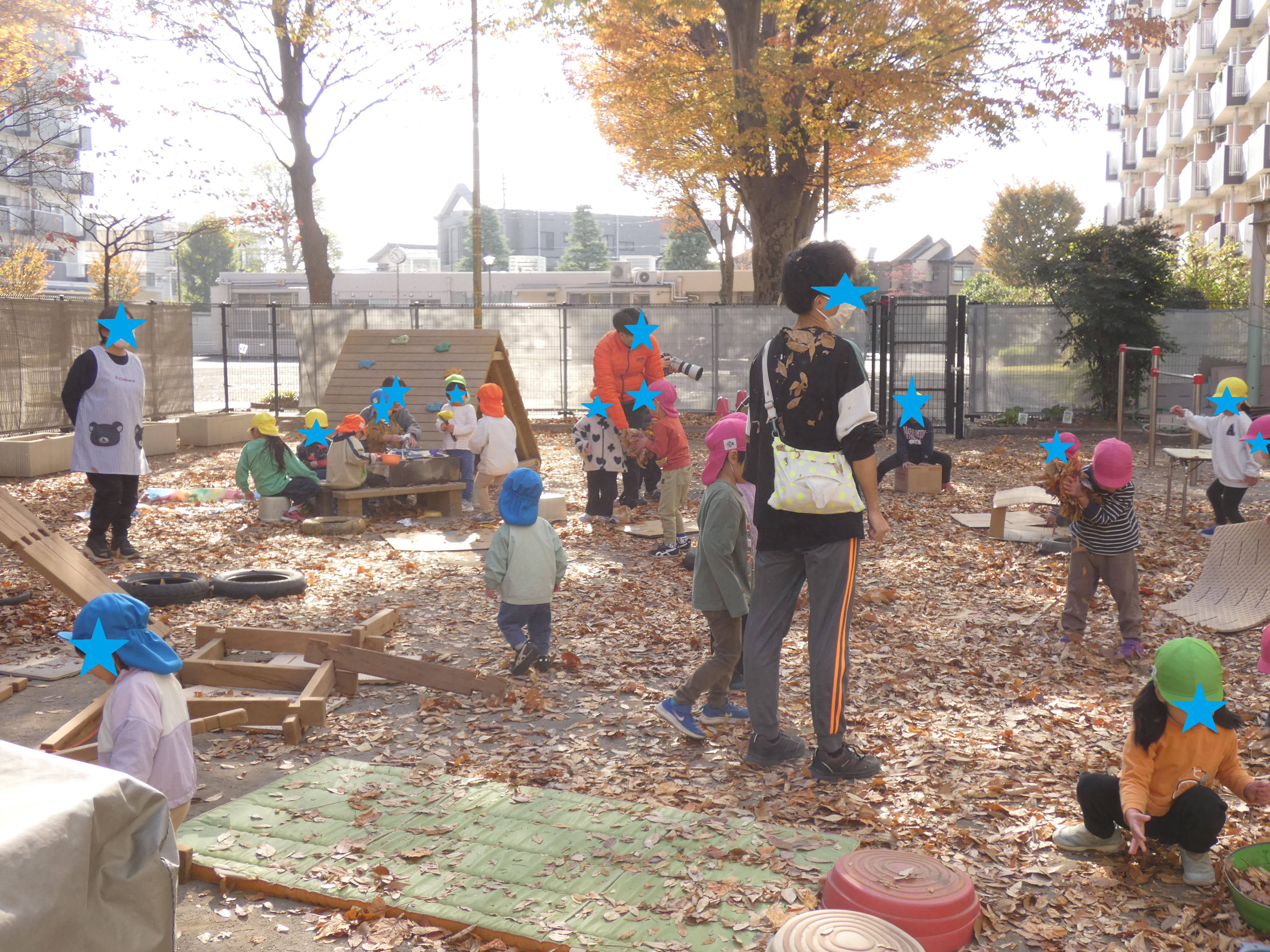 こんなにも多くの落ち葉を使って遊べて、どの子も楽しそうでした!