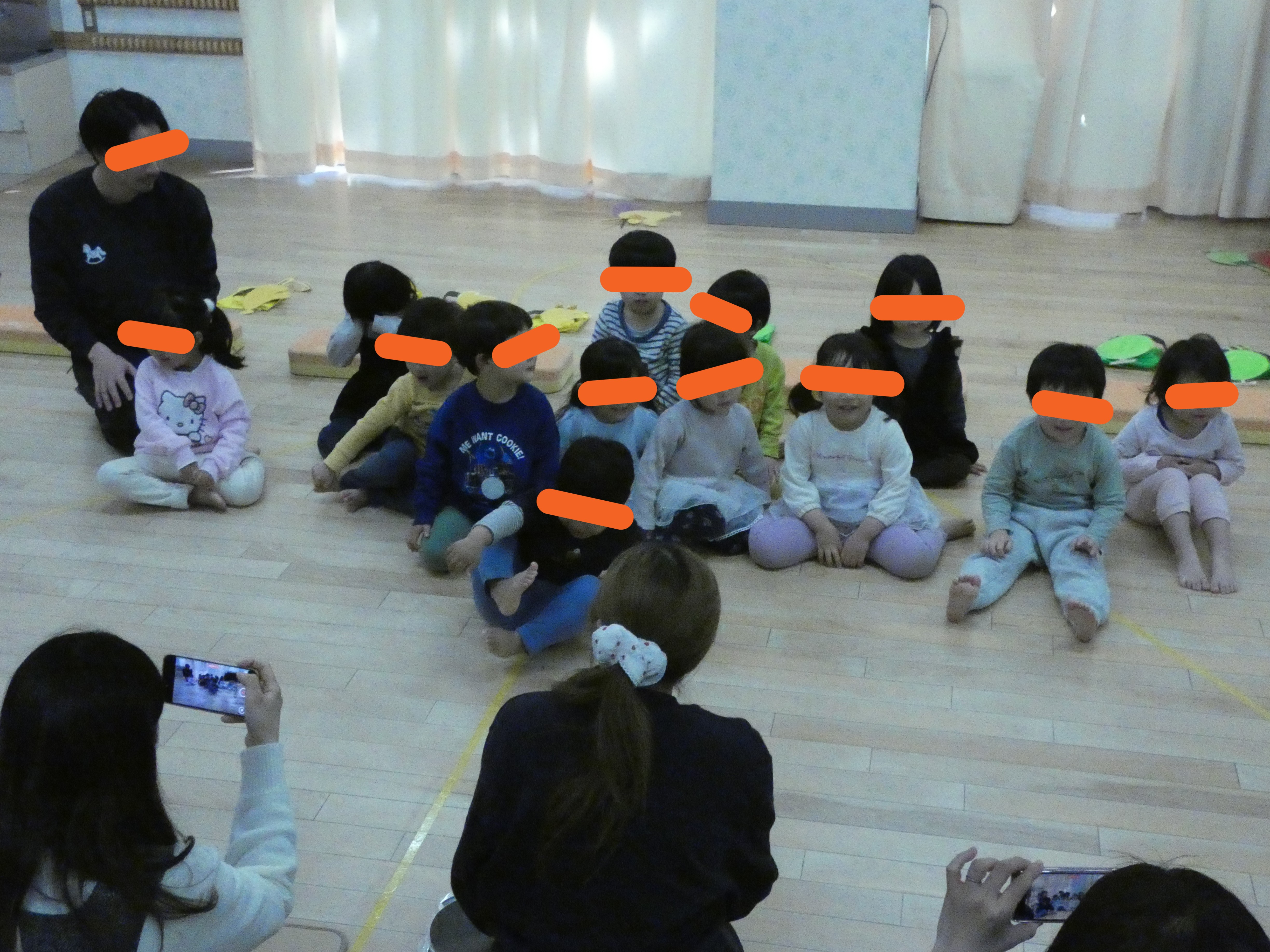 初めてのおおきくなったね会のちゅうりっぷ組さん。緊張しながらも保護者の方から離れて参加することができました。