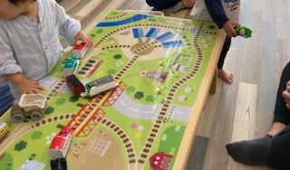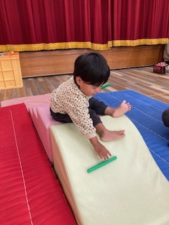 そのあとはいつも教室にあるおもちゃをホールに用意して、