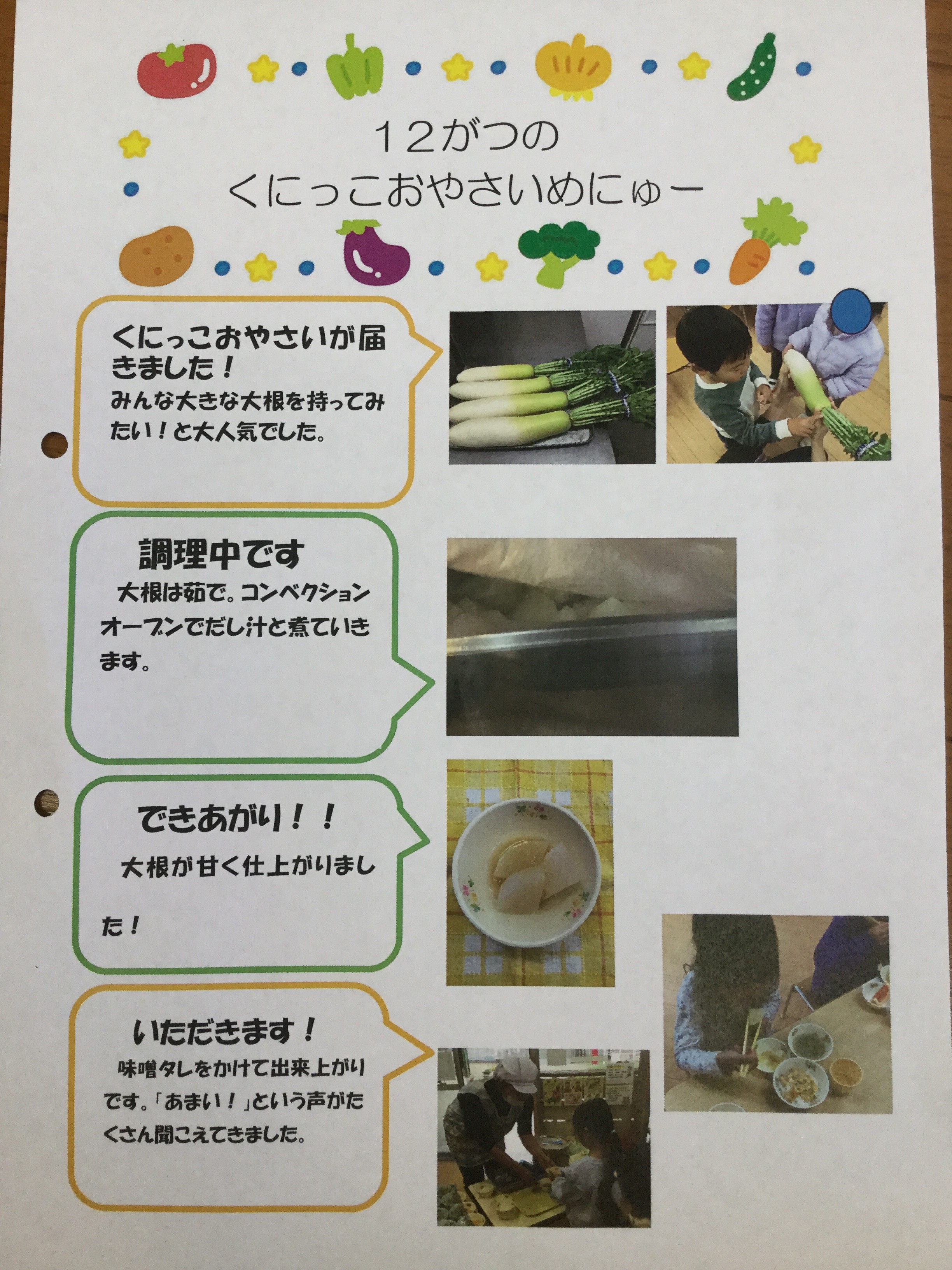 子どもたちは、「大根甘かったよ」「苦手だけど一口食べてみたよ」と教えてくれました♪
