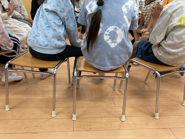 保育園に木のおうちが届き、5歳児クラスのお部屋では、サークルタイムがはじまりました。