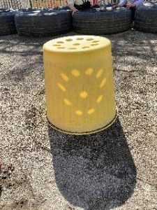 園庭で子どもたちがよく遊んでいるカラーバケツ