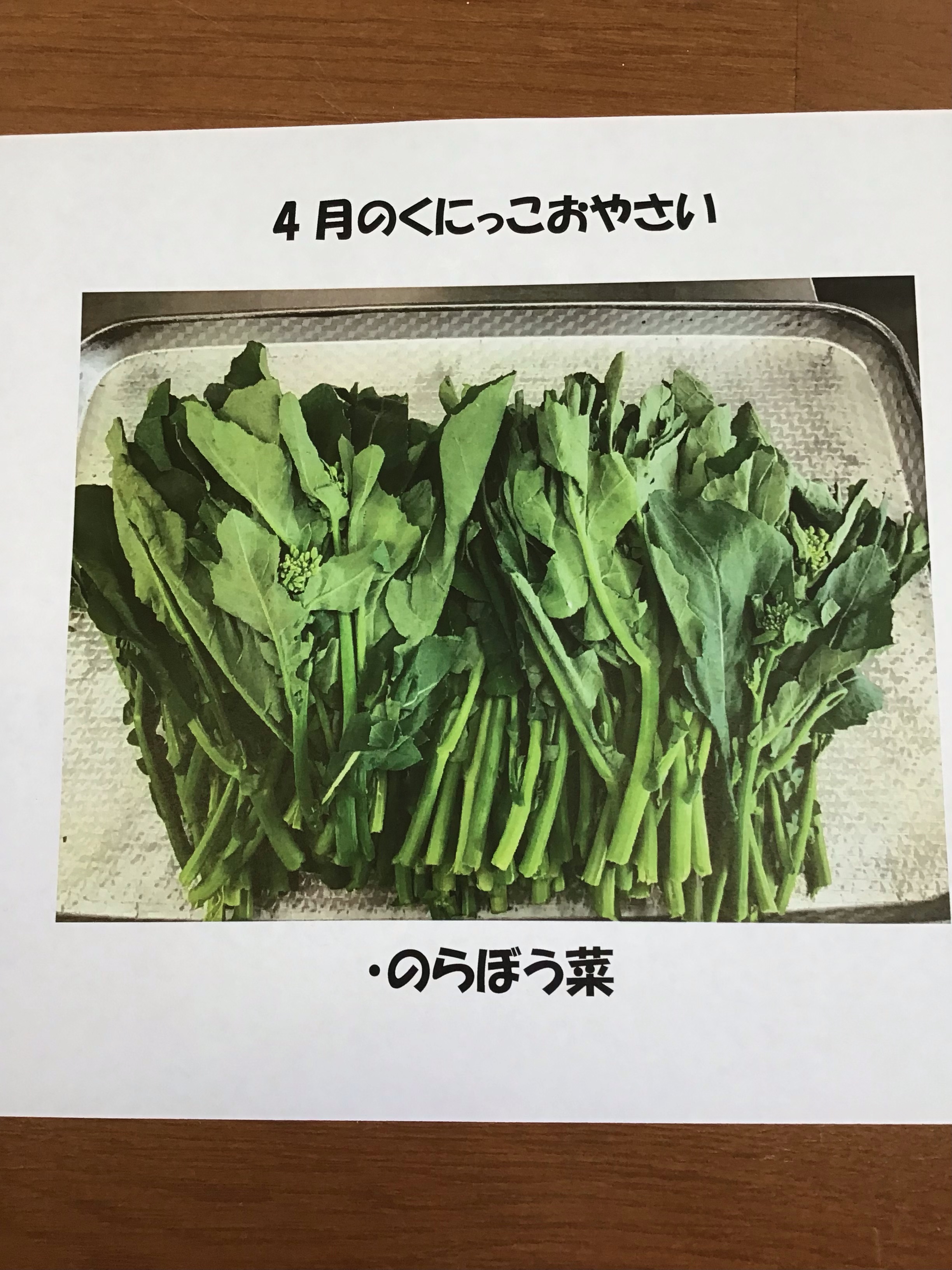 今日はくにっこおやさいメニューの日です。 今月は春の野菜で有名な「のらぼう菜」