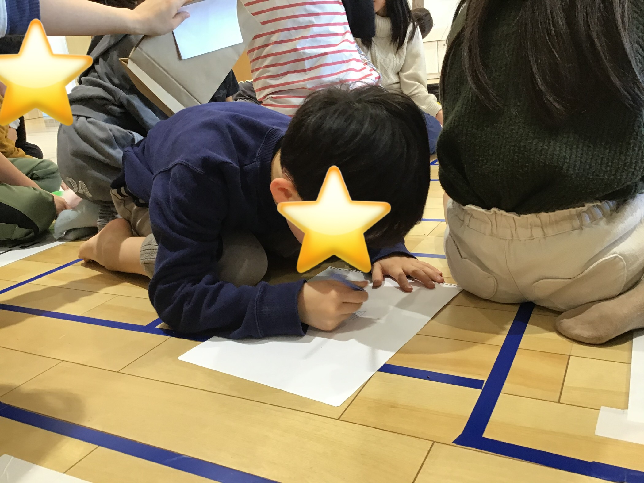 次に4つのグループに分かれて絵での伝言ゲームをおこない、見れる時間は5秒と決まっていましたが、しっかりと見て覚えて絵を描いていました。