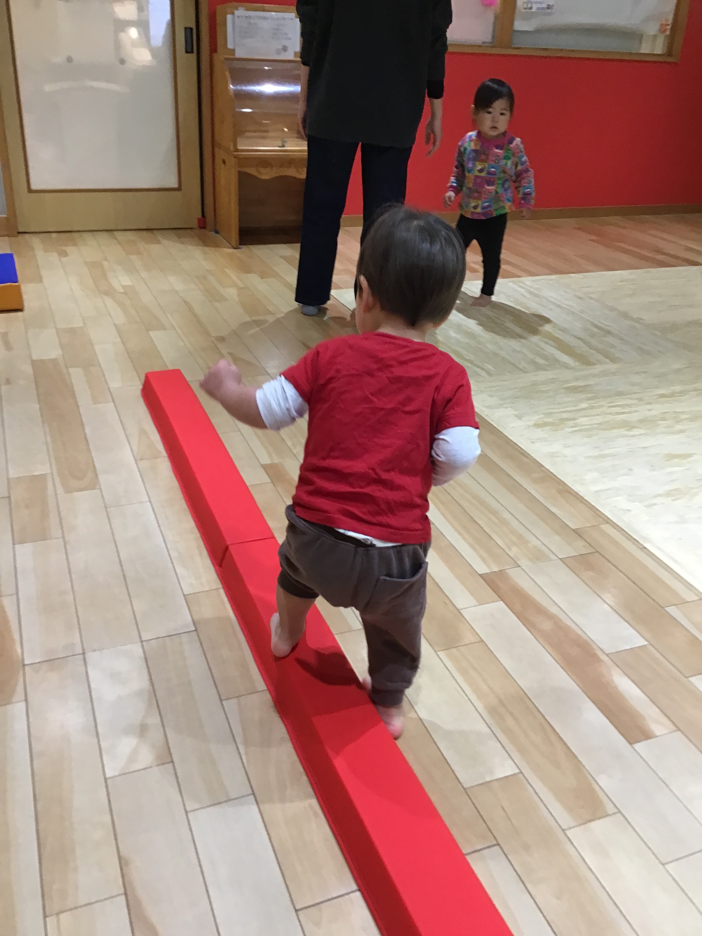 平均台ではバランスを取りながら渡ったり…