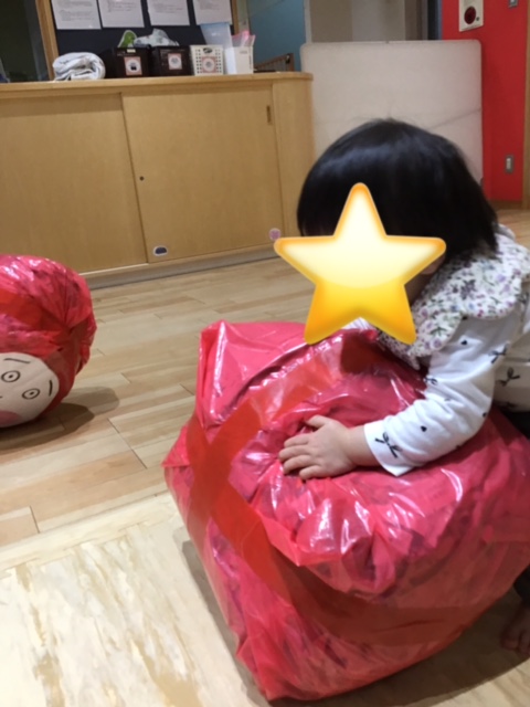 コロコロと転がしてみたり、上に乗ってみたりとたくさん遊びました。