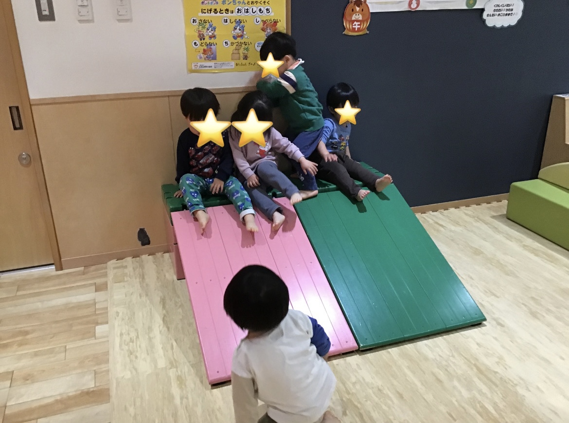 保育士と一緒にせーの!の合図で滑り、シュー!と言いながら滑る姿がありましたよ。