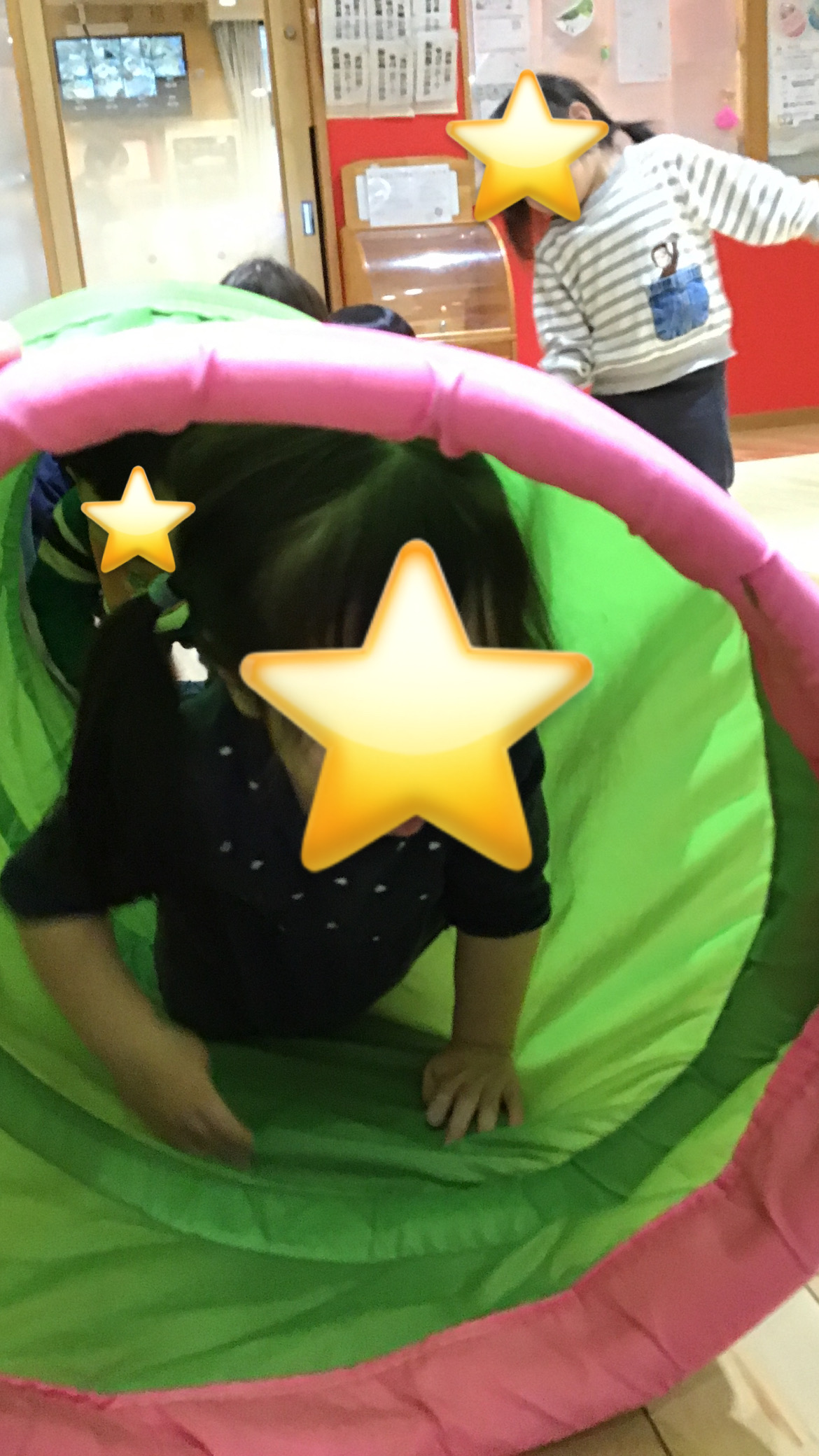 ハイハイでトンネルをくぐると、「ばぁ!」と言いながら出てくるこどもたち。