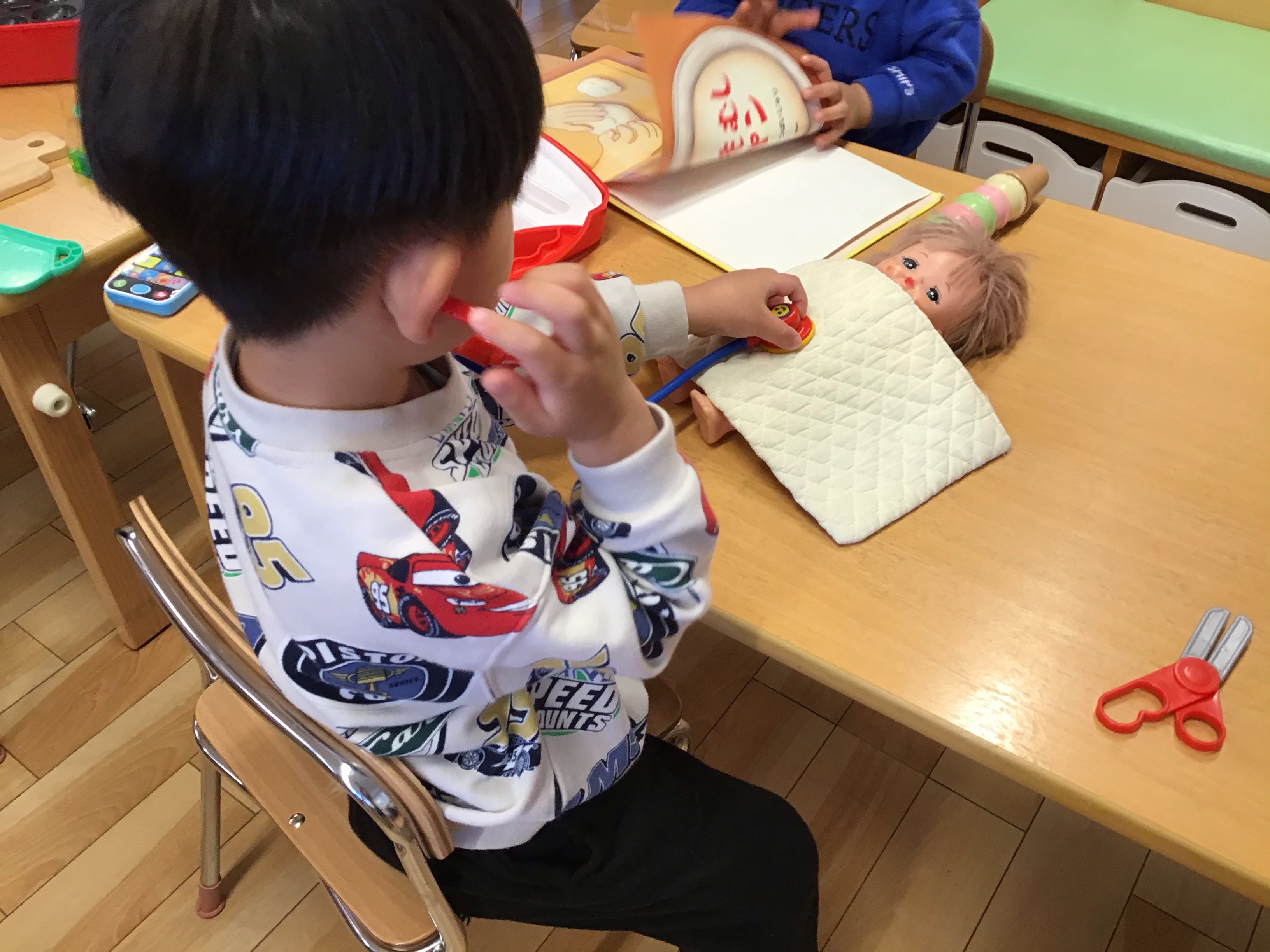 幼児クラスのお友だちは、3歳児クラスのお友だちが1名、4歳児クラスのお友だちが1名でした。