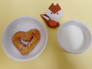 「ハートで可愛い!」「ディズニーランドで食べたことあるよ」「ドーナツに似てるね!」と皆美味しそうに食べていました。