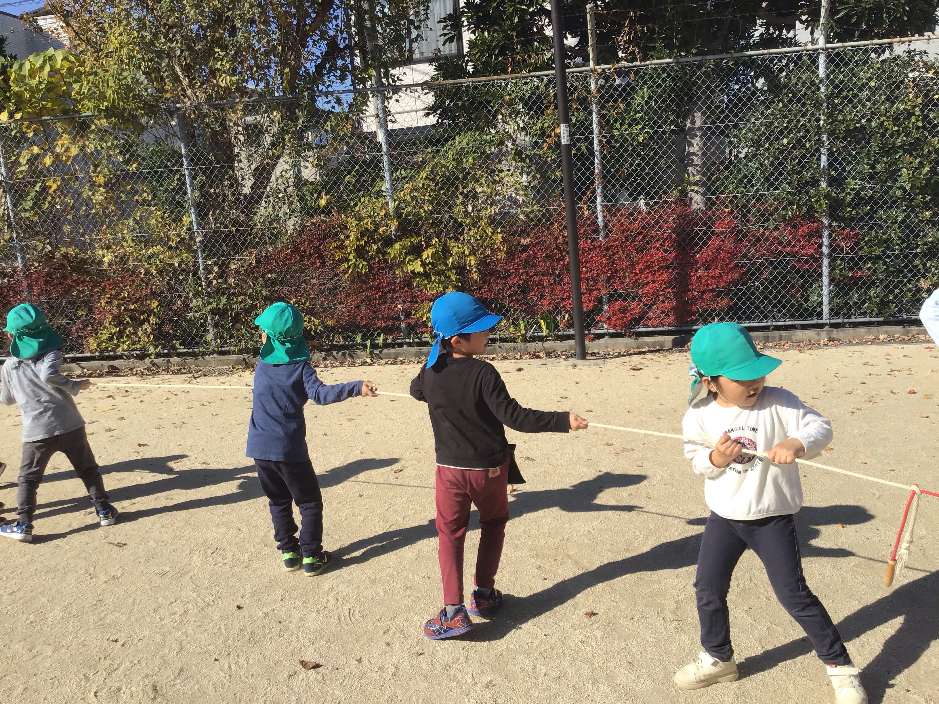 お友だちとサッカーを楽しんだり、縄跳びで綱引きを楽しんでいる様子も見られました。