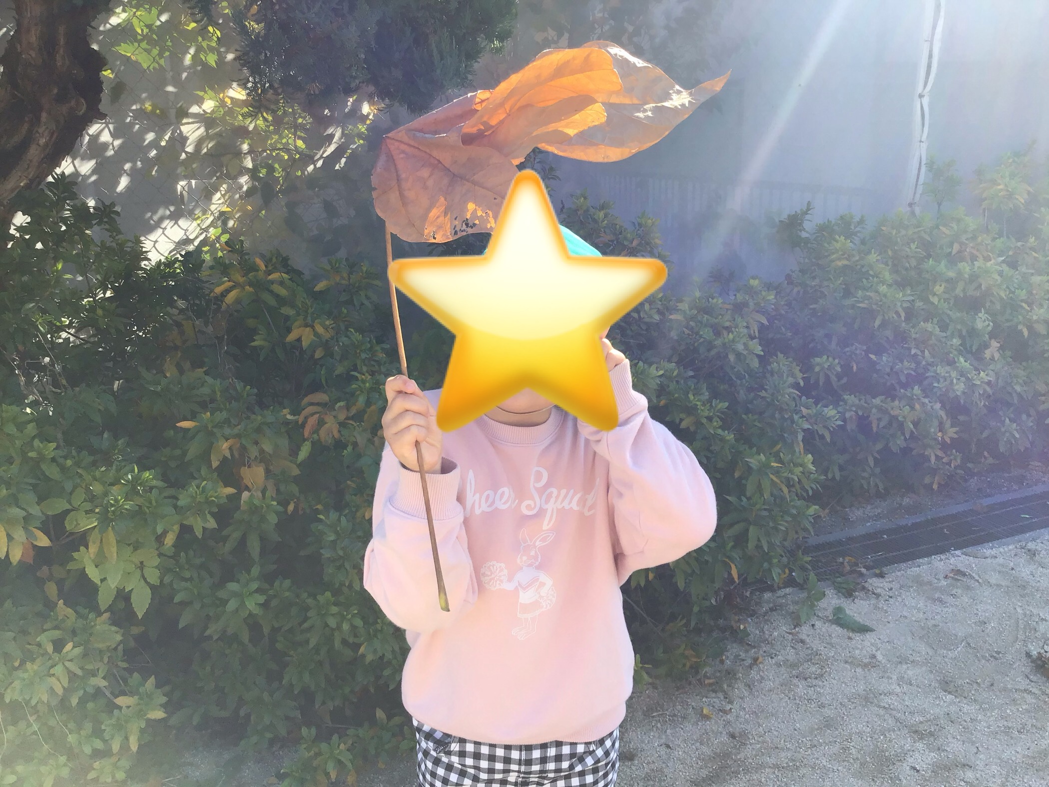 大きな葉を見つけて嬉しそうにポーズをとる姿も見られました。