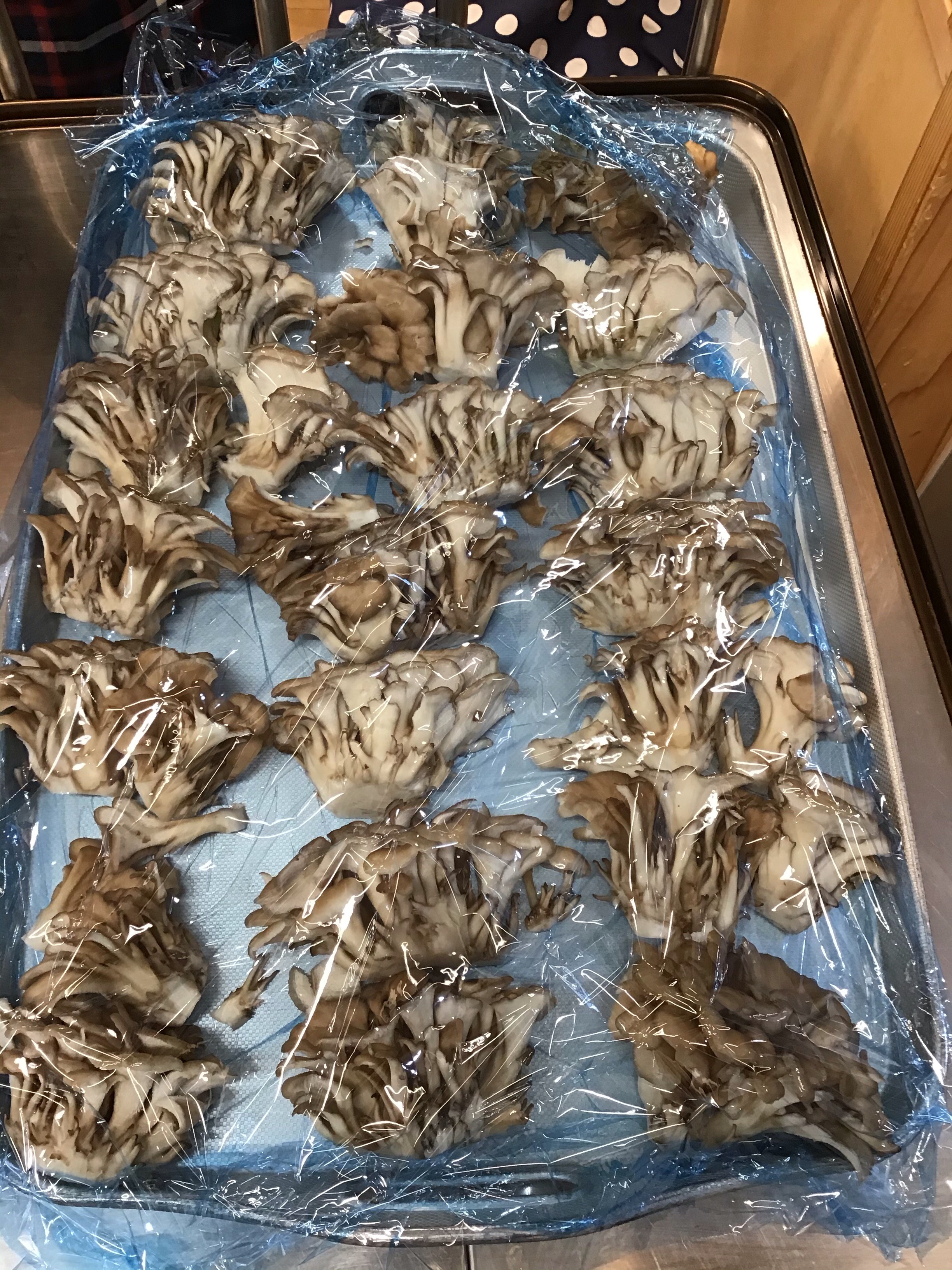今回細かく割くのはマイタケ。 手に取ると「変な匂い〜」「プニプニしてる」と香りや感触を楽しんでいます。