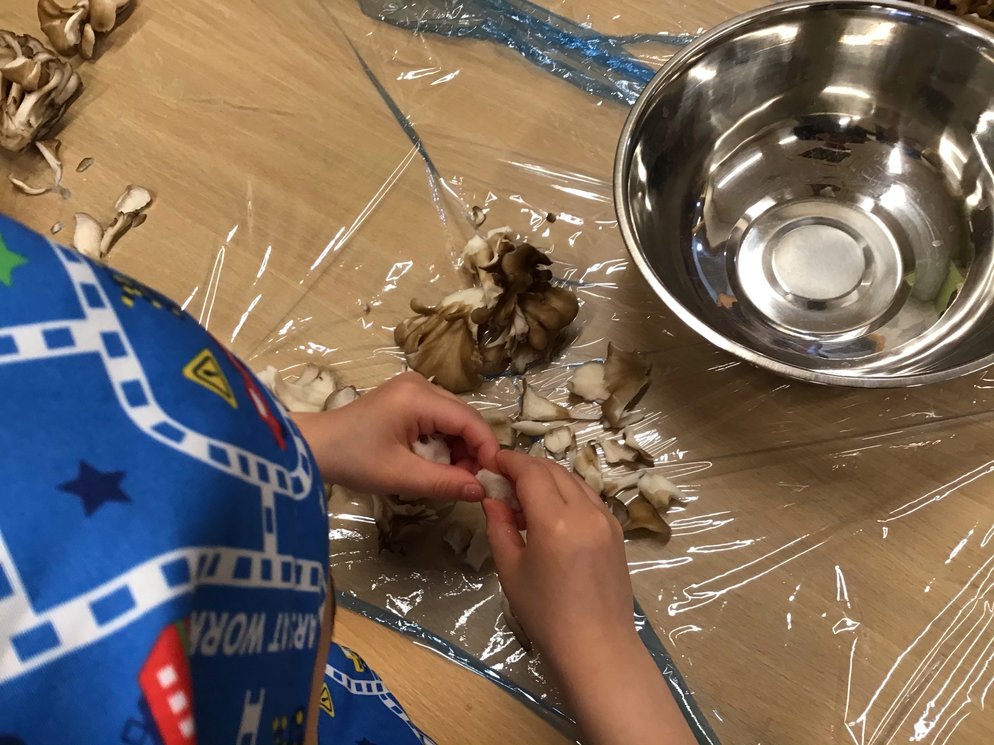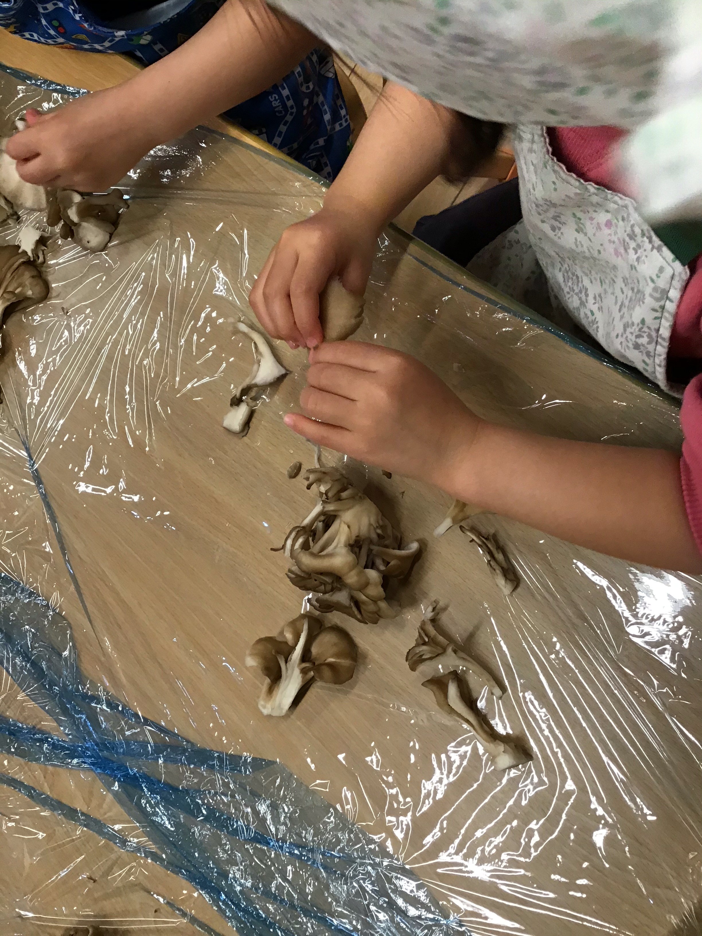 食育活動としてキノコを割きました。