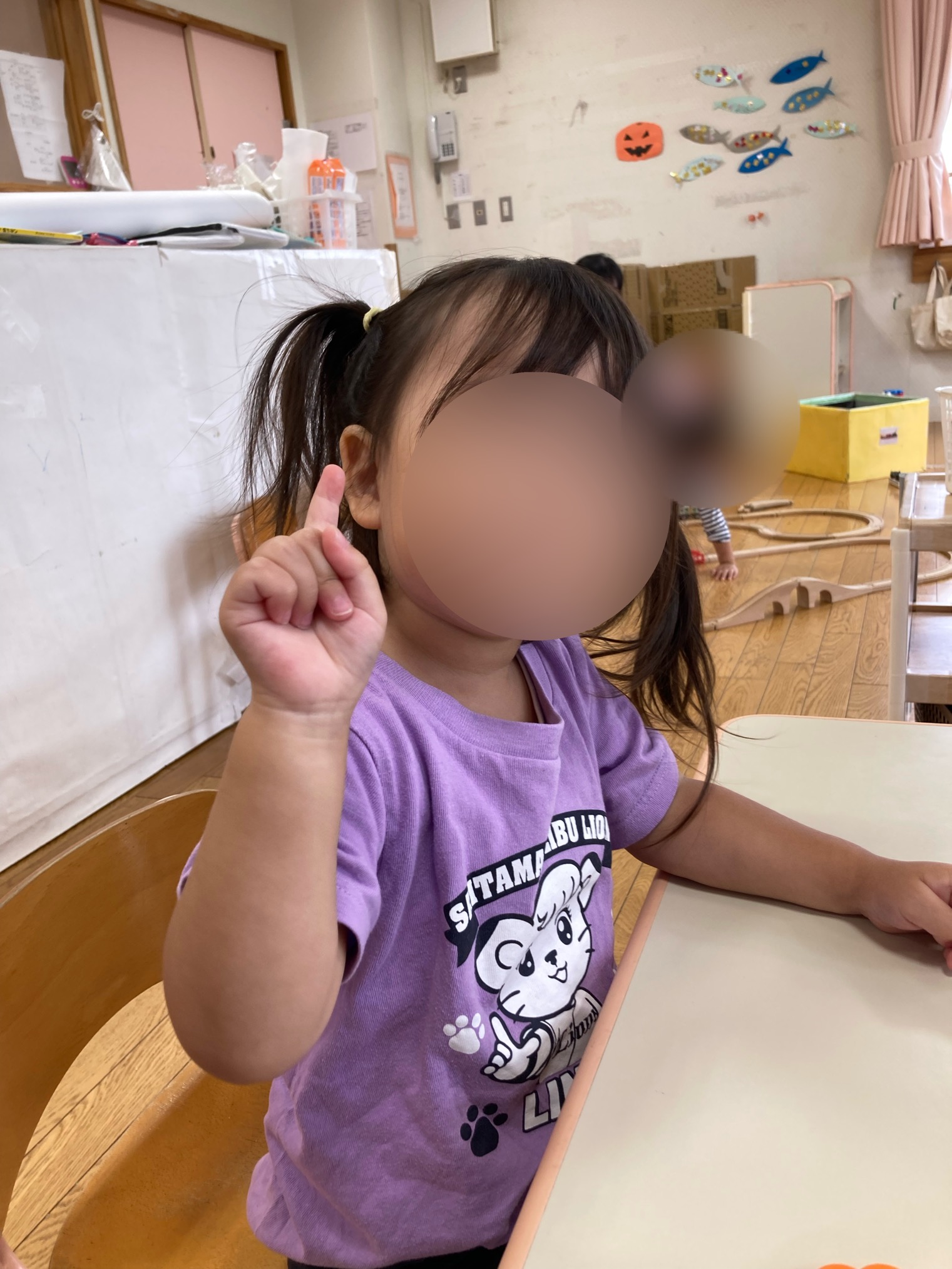 見本でまずは「1の指」と見せると真似をして1の指を作っていた子どもたち。