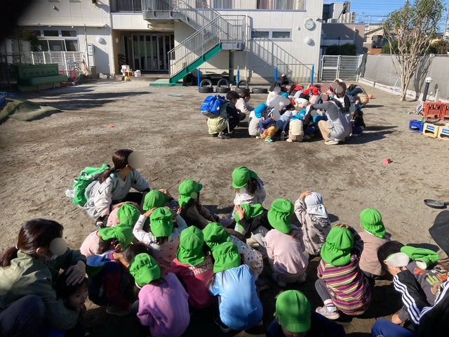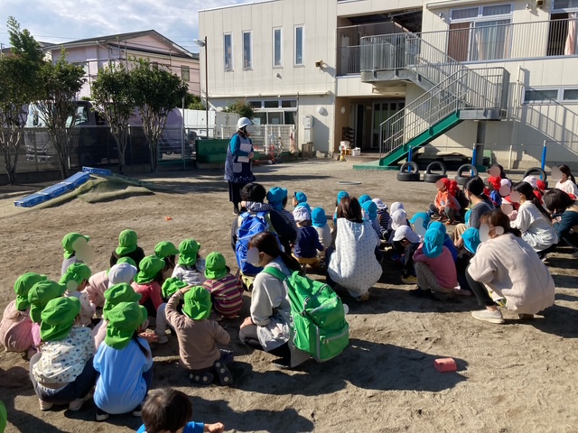 緊急地震速報が流れ 子ども達はそれぞれ園庭、保育室にて 避難をしました。