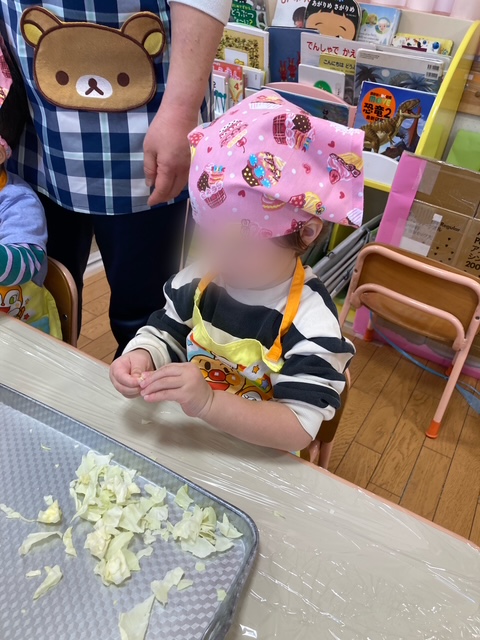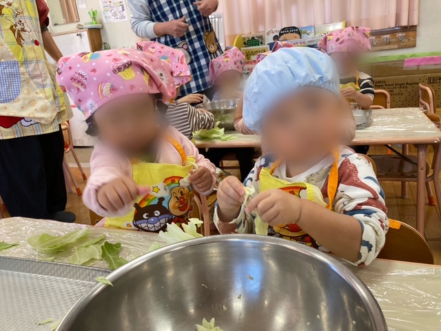 虹組 キャベツちぎりをしました! (2歳児)