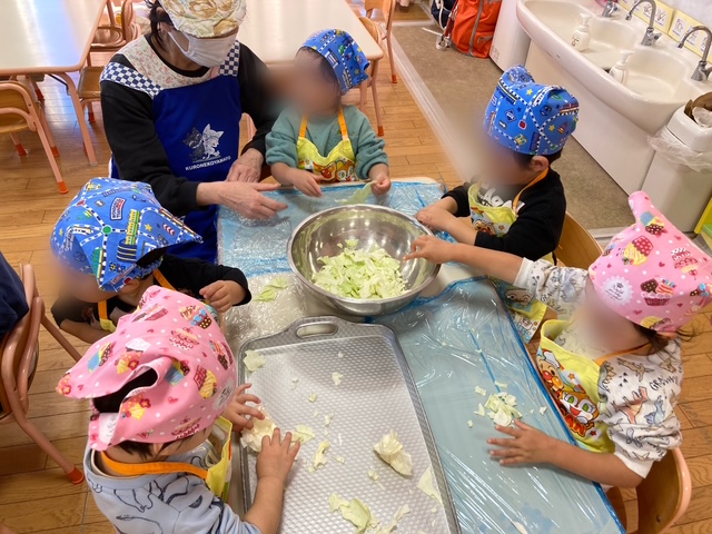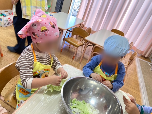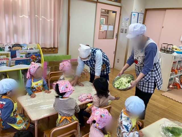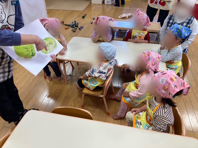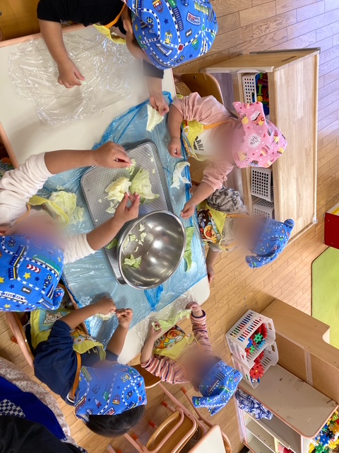 食育活動でキャベツちぎりをしました。