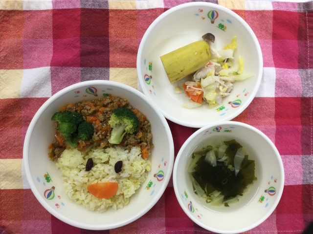 今日のお昼の給食は節分メニュー「鬼さんカレー」でした。