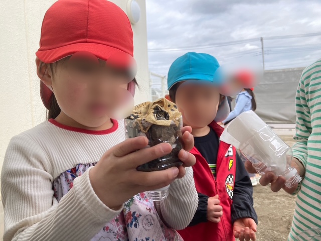 保育者が「なんでだろうね?」と尋ねると、「泥水の泥とか汚いのは、通れないようになってると思う」と空組の男の子が答えてくれました。続けて保育者が「もっと綺麗にするにはどうしたら良いかな?」と呟くと、「これ(コーヒーフィルター)をたくさん使うのはどう?」という、提案がありました。ナイスアイデアですね!早速やってみようと思いましたが、泥水が底を尽きてしまいました。実験はトライアンドエラーで行うのが楽しいと感じた為、次は、コーヒーフィルターを厚めに用意して、もっと綺麗に濾過できるようにしていきます。次の雨の日が楽しみですね!